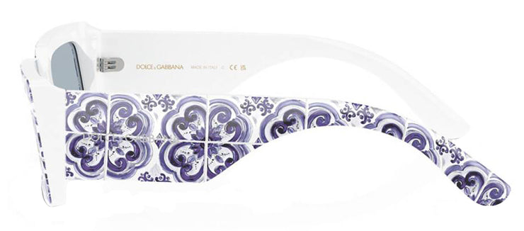 DOLCE & GABBANA DG 4416 345155 Rectangle Blue Maiolica On White Acetate Sunglasses with Light Blue Mirror Silver Lens